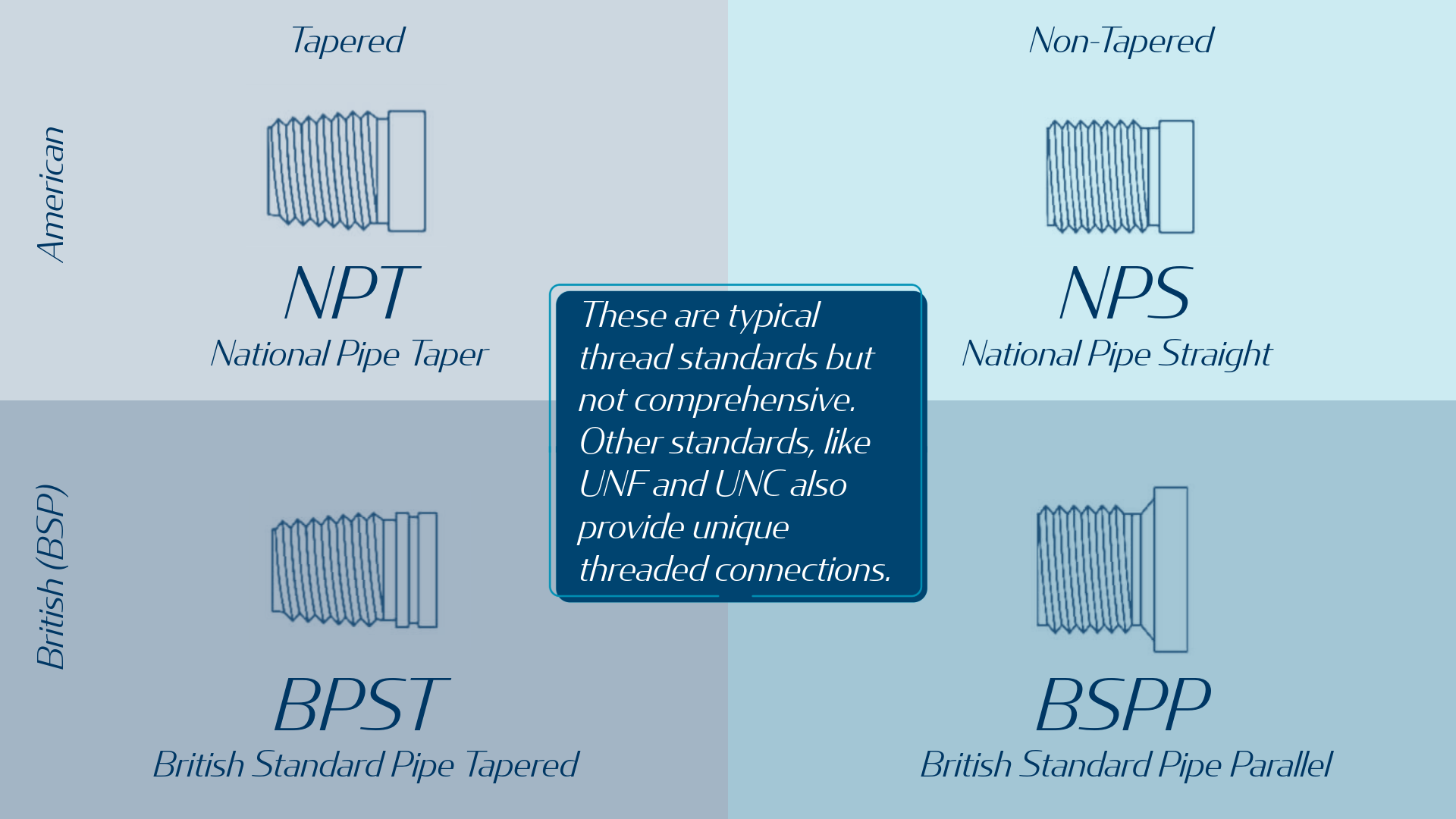 The connection point uses tapered pipe threaded connections on both sides. However, the threads themselves do not align. The original machinery uses British Standard Pipe Taper (BSPT) threads, and the newer tooling uses National Pipe Taper (NPT) threads. While they may look similar at first, these two threading types utilize slightly different angles for their threads, making it impossible for them to safely connect.
